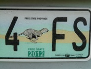 Vol international sans histoire dans un 747 de BA. J'avais pu réserver nos places par internet et nous avions la rangée du milieu pour nous seuls au fond de l'appareil (près des toilettes). Les enfants ont bien dormis et nous sommes arrivés à l'heure à Jo'burg. Environ une heure pour passer l'immigration, récupérer nos bagages et louer notre voiture. Très belle plaque d'immatriculation mais pas à l'image de notre trajet.